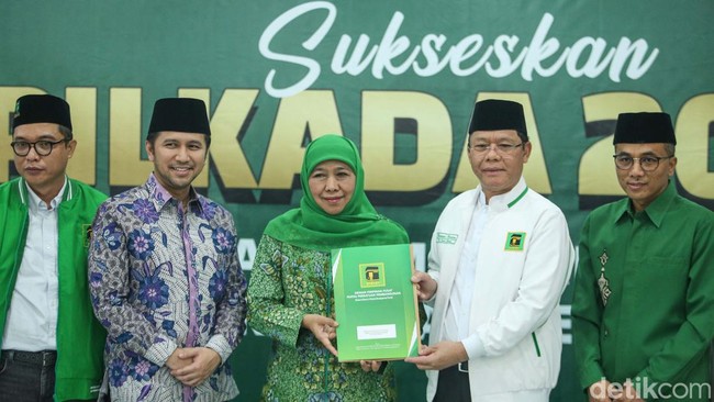 PPP resmi merekom Khofifah Indar Parawansa-Emil Elestianto Dardak untuk maju di Pilgub Jatim 2024. Rekomendasi diserahkan langsung oleh Plt Ketua Umum PPP M Mardiono.