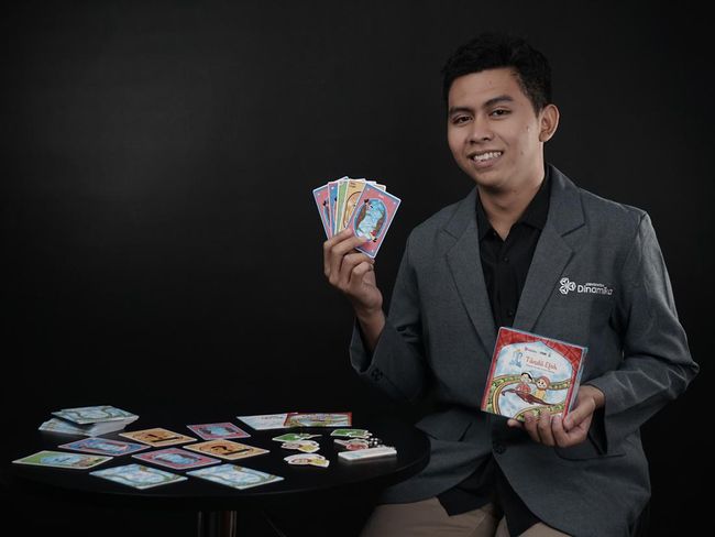 Mahasiswa Prodi Desain Komunikasi Visual (DKV) Universitas Dinamika (STIKOM) Surabaya, Muhamad Ikhwan Amrulloh membuat inovasi belajar mengaji dengan cara seru. Yakni melalui media card game membuat semakin mudah belajar mengaji.