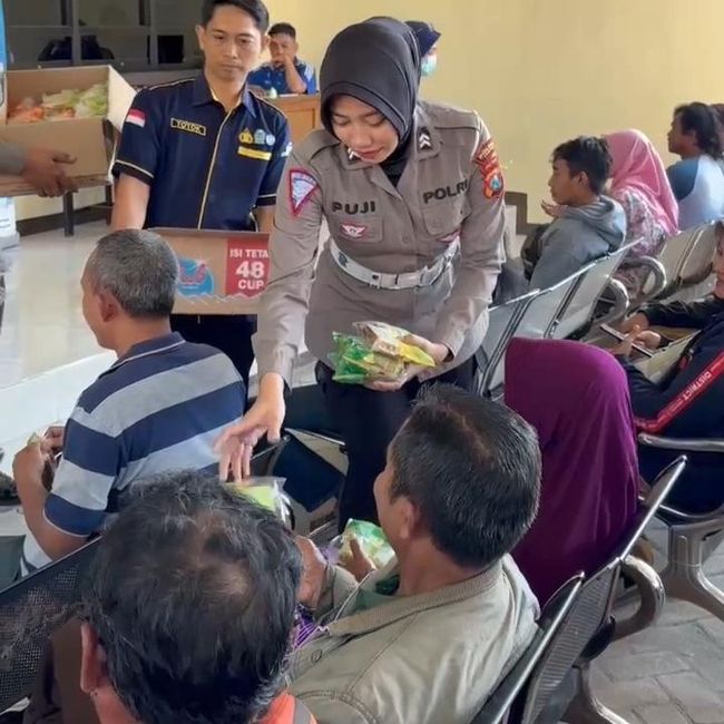 Melihat antusias masyarakat yang membludak, serta agar mereka tak gelisah dan bosan menunggu antrean, para petugas satlantas membagikan minuman dan kue untuk dinikmati sambil menunggu panggilan petugas sesuai no antrian untuk mendapat pelayanan dari petugas samsat.