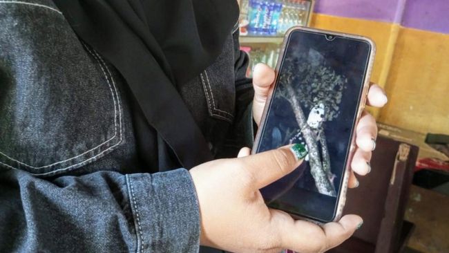 Setelah memastikan benda itu memang tampak seperti pocong yang bertengger di cemara depan rumahnya, Fery pun mengabadikannya dengan ponselnya.