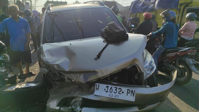 Akibat kecelakaan tersebut, mobil berwarna cokelat muda itu mengalami ringsek di bagian depan. Termasuk, beberapa sepeda motor yang ditabraknya secara beruntun.