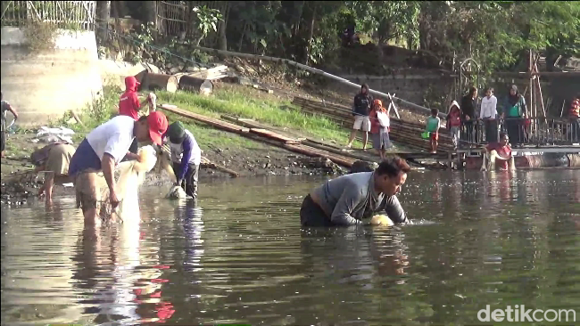 Dengan menggunakan peralatan sederhana berupa tombak maupun jala, warga menangkap ikan di permukaan danau. Warga pun dengan mudah menangkap ikan nila, mujaer, dan ikan tawes.