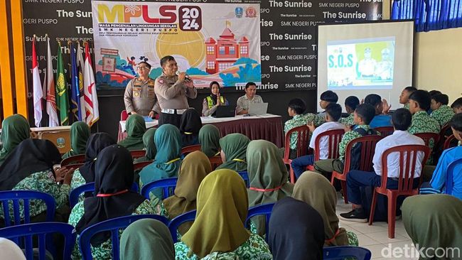 Satlantas Polres Pasuruan keliling ke sekolah-sekolah sosialisasi keselamatan berkendara. Petugas tak henti-hentinya mengajak siswa mematuhi peraturan lalu lintas untuk menekan kecelakaan saat Masa Pengenalan Lingkungan Sekolah (MPLS).