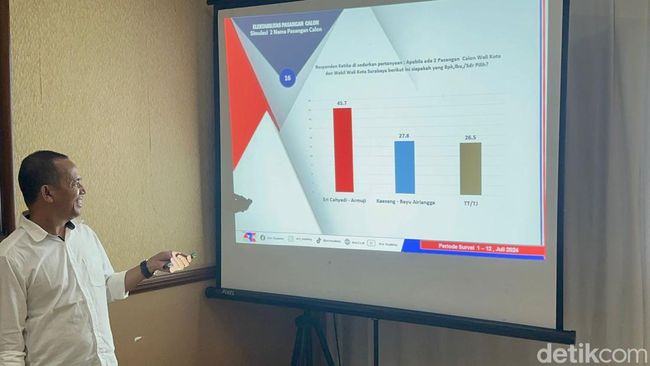 "Dari simulasi tersebut, duet yang paling berpotensi menang adalah duet Eri-Bayu. Artinya Eri bergabung di KIM melawan koalisi PDIP yang dimotori oleh Armuji. Tetapi, jika Eri bersama Armuji, angkanya masih belum bisa dikejar oleh nama lain," jelas Baihaki.