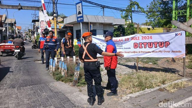 Dua perlintasan sebidang kereta api (KA) di wilayah Sidoarjo ditutup mulai Selasa (23/7/2024). Penutupan dilakukan setelah beroperasinya flyover Juanda dan frontage road Letjen S Parman yang berada di sisi timur jalur KA dan Jalan Raya Waru 1.