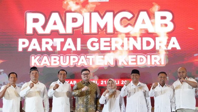 "Mas Katino sebagai calon Wali Kota Kediri. Silahkan bekerjasama dengan baik bersama Mas Dhito, calon Bupati Kediri," kata Sekretaris DPD Partai Gerindra Jawa Timur Kharisma Febriansah di sela-sela Rapimcab DPC Partai Gerindra Kabupaten Kediri yang digelar di IKCC Hotel Insumo, Kediri, Minggu (21/7/2024).