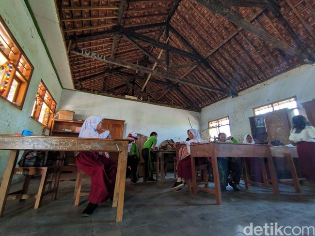 "Kelas 4 di ruangan yang atapnya rapuh. Kelas 5 bagian atap diberi penyangga. Dua kelas ini karena keterbatasan ruangan terpaksa belajar di ruang masing-masing," jelas Bambang.