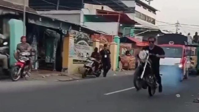 Insiden itu terekam video lalu tersebar di media sosial dan WhatsApp. Dalam video berdurasi 34 detik itu pemotor naik Kawasaki Ninja di depan truk iring-iringan sound system karnaval bermaksud melakukan atraksi.