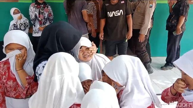 Puluhan siswa-siswi dari kelas 1 sampai kelas 6 itu bahkan menangis di pelukan salah satu gurunya setelah mengetahui kedatangan perwakilan Dinas Pendidikan dan Kebudayaan (Dispendik) Kabupaten Probolinggo untuk musyawarah.