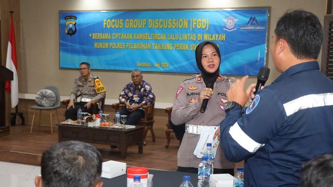 Sat Lantas Polres Pelabuhan Tanjung Perak Surabaya menggelar Focus Group Discussion (FGD). FGD ini digelar membahas upaya mencegah dan menekan angka kecelakaan lalu lintas di jalan raya.