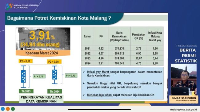 "Indeks Kedalaman Kemiskinan dan Indeks Keparahan Kemiskinan Kota Malang tahun 2024 mengalami penurunan yang cukup signifikan dibandingkan kabupaten atau kota lainnya. Hal ini bisa diartikan bahwa kualitas kesejahteraan penduduk di Kota Malang sudah lebih baik," bebernya.