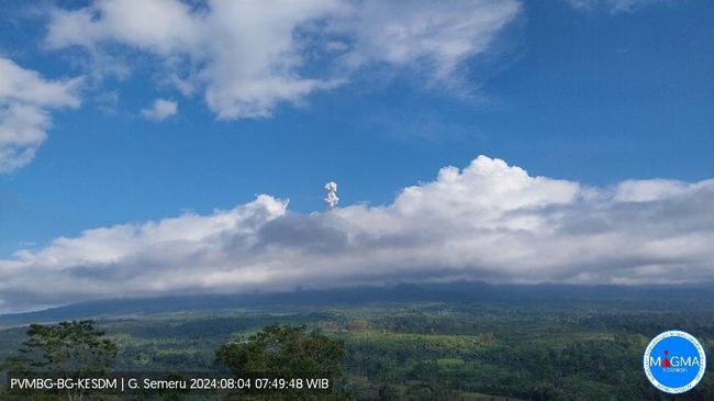 "Terjadi erupsi G. Semeru pada hari Minggu, 04 Agustus 2024, pukul 07:48 WIB dengan tinggi kolom abu teramati ± 600 m di atas puncak atau ± 4.276 meter di atas permukaan laut," tulis petugas Ghufron Alwi dalam keterangan yang dilihat detikJatim, Minggu (4/8/2024).
