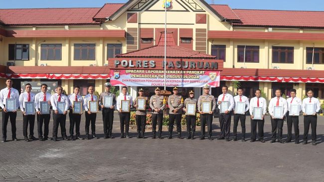 Sebanyak 17 personel Polres Pasuruan mendapatkan penghargaan karena para personel tersebut telah berprestasi. Selain itu, satu personel juga mendapatkan kenaikan pangkat pengabdian.