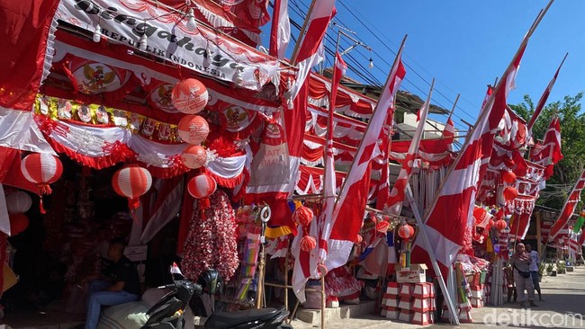 Bendera plastik kecil yang disambung dengan tali rami bisa menjadi hiasan di Lorong pemukiman, lapangan terbuka atau di sekitar rumah warga. Begitu pula umbul-umbul merah putih, yang bisa kamu temukan di banyak penjual dekorasi jelang 17 Agustus yang marak bermunculan jelang puncak perayaan HUT republik Indonesia.