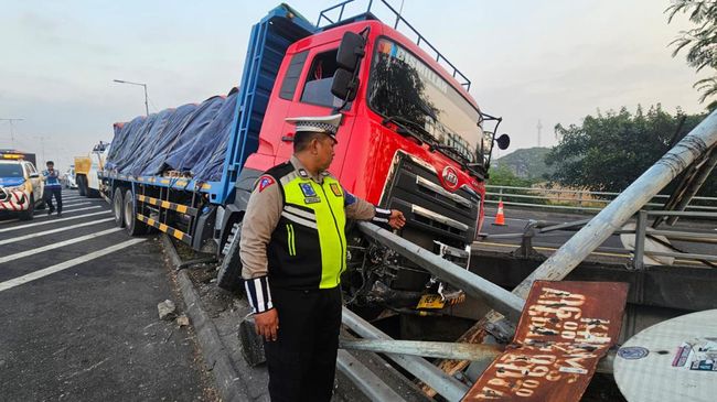 "Sesampai di interchange Dupak Tol Gresik arah ke Waru, sopir truk tronton berwarna merah bernopol diduga mengantuk dan menabrak barrier dan tiang rambu," kata Imet, Minggu (11/8/2024).