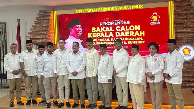 "Kami serahkan empat rekomendasi kepada bacakada yang hari ini hadir. Ini surat rekomendasinya spesial karena ditandatangani oleh Presiden RI terpilih Pak Prabowo Subianrto," kata Sadad di Kantor DPD Gerindra Jatim, Rabu (14/8/2024).