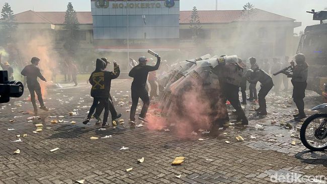Karena situasi kian memanas, pasukan Dalmas Polres Mojokerto yang terlatih pun dikerahkan untuk memukul mundur massa dengan mobil watercanon. Polisi menyemprotkan air untuk membubarkan para pengunjuk rasa. Sehingga situasi kembali kondusif.