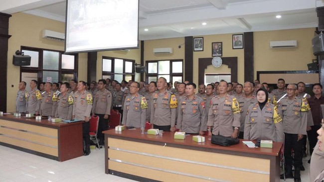 Kegiatan ini berlangsung di Gedung SKJ Polres Lamongan dipimpin langsung oleh Kapolres Lamongan AKBP Bobby A. Condroputra dan didampingi Wakapolres Lamongan, PJU Polres Lamongan, Kapolsek Jajaran Polres Lamongan, serta personel Polres Lamongan yang terlibat dalam Operasi Mantap Praja (OMP).