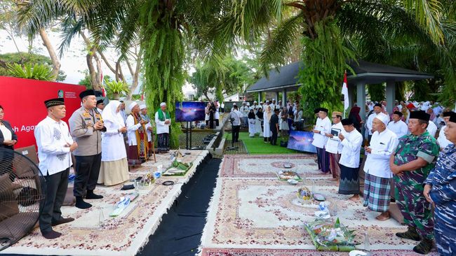 Memperingati HUT ke-79 Kemerdekaan RI, Pemkab Banyuwangi menggelar tasyakuran dan doa bersama di ruang terbuka hijau (RTH) Taman Makam Pahlawan (TMP) Wisma Raga Satria Jumat (16/8). Kegiatan ini sebagai wujud syukur atas kemerdekaan Indonesia serta momentum untuk mendoakan para pahlawan pejuang kemerdekaan.