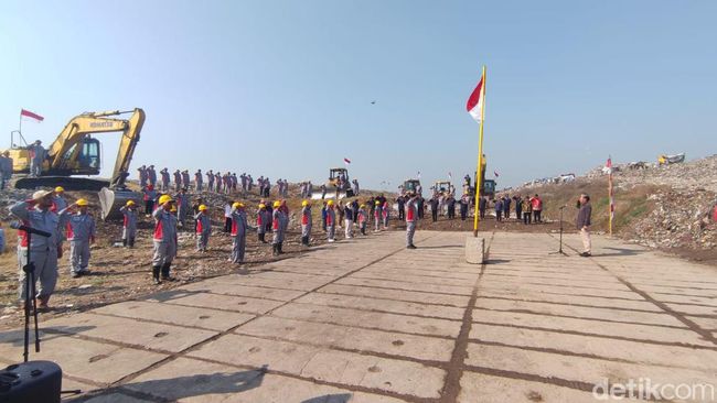 Puluhan pegawai Dinas Lingkungan Hidup dan Kebersihan (DLHK) dan pekerja pemilah sampah melakukan upacara peringatan HUT Kemerdekaan RI ke-79 di Tempat Pembuangan Akhir (TPA) di Sidoarjo. Hal itu dilakukan karena sampai saat ini, Indonesia belum merdeka dari sampah.