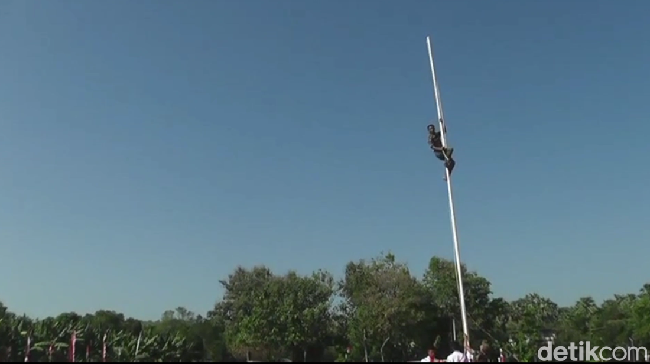 1. Ghofur Melepas Sepatu dan Sabuk Sebelum Panjat Tiang Bendera