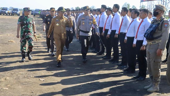 Kepolisian Resor Probolinggo menggelar Apel Gelar Pasukan Operasi Mantap Praja (OMP) Semeru 2024 yang berlangsung di lapangan depan exit Tol Kraksaan, Senin (19/8/2024).