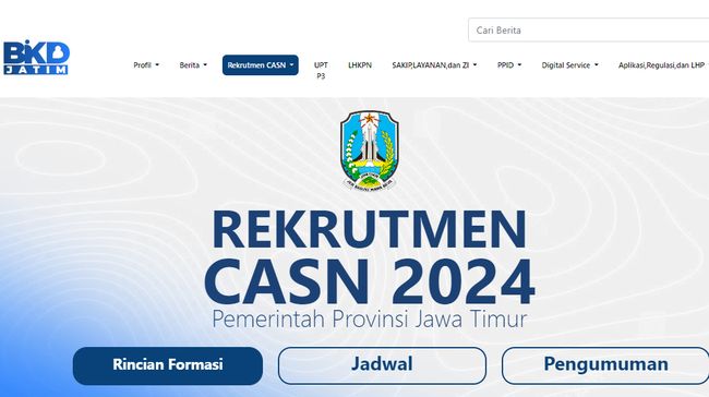 Pemerintah Provinsi (Pemprov) Jawa Timur (Jatim) membuka formasi calon pegawai negeri sipil (CPNS) sebanyak 2.314 formasi. Pendaftaran CPNS Pemprov Jatim sudah dibuka mulai hari ini, Selasa 20 Agustus 2024. Simak informasi selengkapnya di bawah ini.