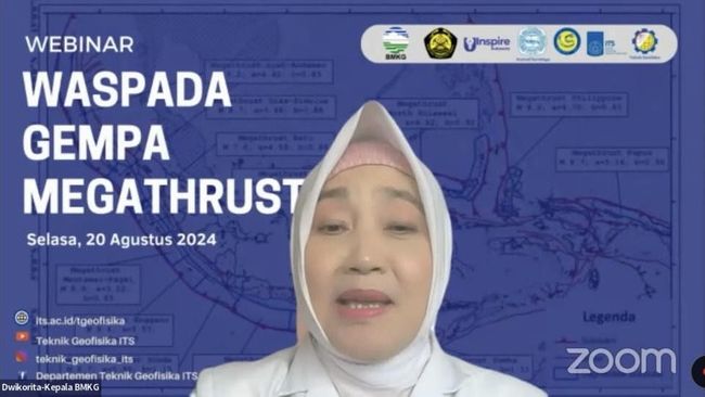"Megathrust dapat dianalogikan sebagai patahan dengan dorongan naik yang besar karena mampu mengakumulasi energi medan tegangan gempa kuat yang menimbulkan rekahan panjang dan bidang pergeseran yang luas," jelas Dwikorita dalam webinar Waspada Gempa Megathrust yang digelar ITS, Selasa (20/8/2024).