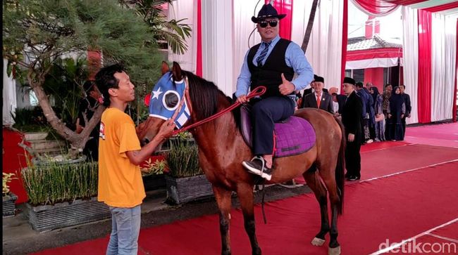 Pria yang akrab disapa Arjun tak canggung saat menunggang kuda. Padahal sejawatnya banyak yang naik berbagai kendaraan mewah saat hadir di pelantikan.