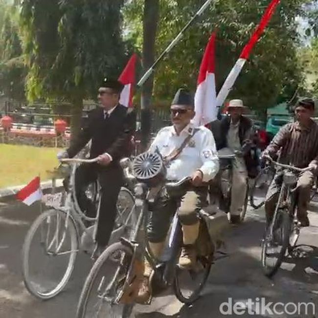 Politisi PDIP asal Pulau Masalembu, salah satu pulau terluar di Sumenep tiba di lokasi pelantikan, Pendopo Keraton Sumenep, naik sepeda ontel.