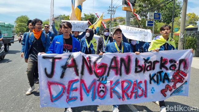 Massa aksi dari mahasiswa membawa banner, bendera hingga spanduk bertuliskan kritikan pedas untuk pemerintah dan elite politik. Mereka mengungkapkan kekecewaan dan mengaku terus mengawal hingga pendaftaran kepala daerah.