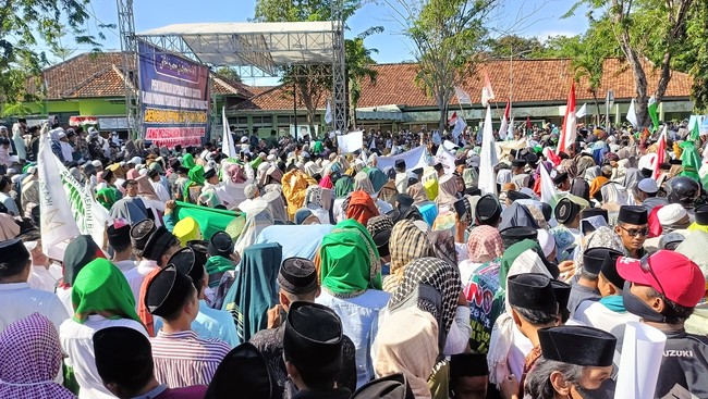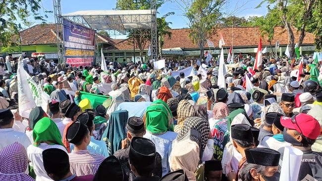 Ratusan santri dan masyarakat di Pamekasan menggelar demo di gedung DPRD setempat. Mereka menolak rencana pemerintah yang melegalkan kontrasepsi pada pelajar.