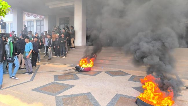 Di Bangkalan, massa yang terdiri dari mahasiswa bahkan sempat melakukan aksi dorong karena memaksa masuk. Massa juga membakar dua ban bekas.