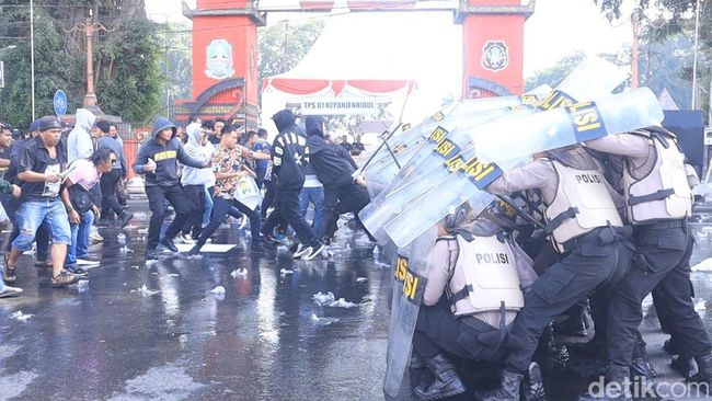 Ratusan personel disiapkan untuk menghadapi massa yang tak terima dengan hasil perhitungan suara. Saat suasana semakin memanas, kendaraan water cannon diterjunkan untuk memukul mundur para demonstran.
