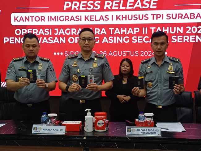 "Sebagai bagian dari upaya peningkatan pengawasan, penindakan, serta pencegahan pelanggaran hukum terkait keberadaan warga negara asing (WNA) di Indonesia, Kantor Imigrasi Kelas 1 Khusus TPI Surabaya juga melaksanakan Operasi Jagratara di wilayah kerja Kantor Imigrasi Kelas I Khusus TPI Surabaya," ujarnya.