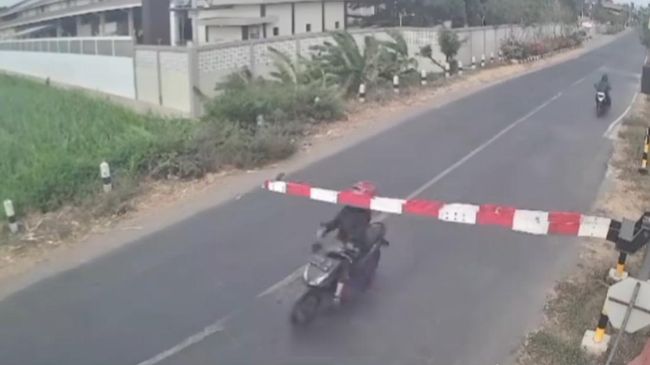 Palang pintu pelintasan kereta api di Desa Branggahan, Ngadiluwih, Kabupaten Kediri sekali lagi rusak. Kali ini ditabrak oleh seorang pemotor. Tak hanya rusak, palang pintu itu juga lepas saking kerasnya ditabrak.