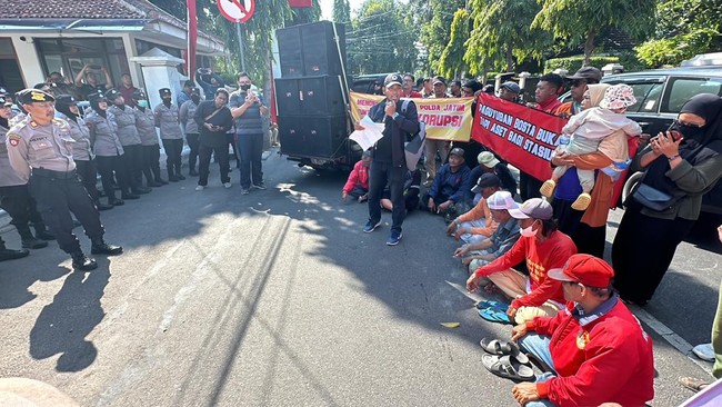 Dalam aksinya, mereka tampak menggelar orasi dan membentangkan berbagai poster. Mereka protes terkait penataan dan penertiban PKL di Stasiun Kota Kediri pada beberapa waktu lalu yang dianggap merugikan.