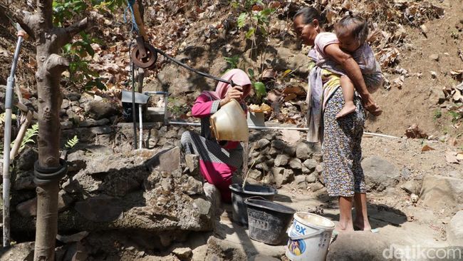 "Yang tidak kebagian air ya mencari di hutan, itu pun belum tentu ada. Kasihan warga di sini harus memikul air dari hutan," tandas Tukimun.
