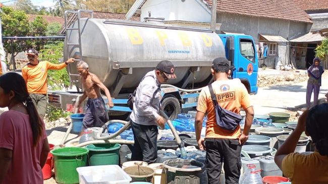 Ada 10 Desa di 5 Kecamatan Kabupaten Blitar mengalami krisis air bersih imbas kekeringan. Sebanyak 1.033 kepala keluarga (KK) terdampak krisis air bersih ini sehingga memerlukan bantuan suplai air bersih dari BPBD Blitar.