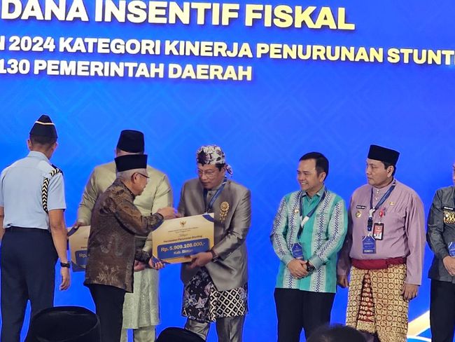 Apresiasi berupa insentif fiskal sebesar Rp 6 miliar ini diterima langsung Wabup Lamongan, Abdul Rouf saat Rapat Koordinasi Nasional (Rakornas) Percepatan Penurunan Stunting 2024, Rabu (4/9/2024) sore di Jakarta.