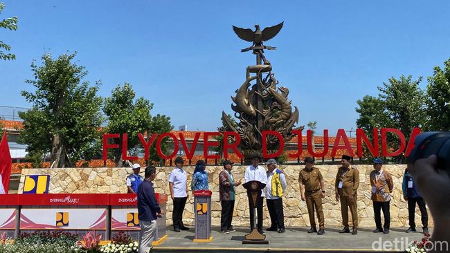 "Dengan mengucap bismillahirrahmanirrahim, Flyover Djuanda, 9 jembatan callender hamilton, dan pelaksanaan inpres jalan di provinsi Jatim pagi ini saya nyatakan diresmikan," kata Presiden Joko Widodo dalam sambutannya, Jumat (6/9/2024).