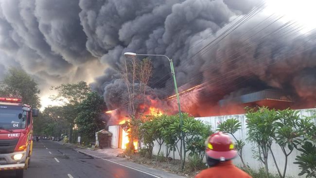 Kebakaran gudang milik UD Untung Makmur Sejahtera itu terjadi Sabtu (7/9/2024) sekitar pukul 06.30 WIB. Api membumbung tinggi dan asap tebal menyelimuti kawasan sekitar.