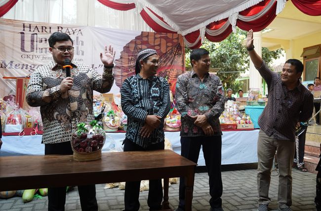"GKJW Segaran ini punya kebiasaan untuk mensyukuri hasil bumi dan segala sesuatunya itu dengan melakukan (lelangan) undhuh-undhuh yang mana hasil lelang itu nantinya dimasukkan ke kas gereja untuk operasional" kata Mas Dhito.