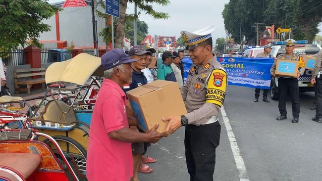 Satlantas Polres Blitar Kota menyalurkan bantuan sosial (bansos) kepada sejumlah tukang becak, supeltas, tukang ojek dan sebagainya. Bantuan itu disalurkan dalam rangka memperingati Hari Lalu Lintas Bhayangkara ke-69.