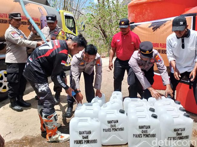 Sejumlah desa di Ponorogo mengalami kekeringan. Untuk membantu masyarakat, Kapolres Ponorogo AKBP Anton Prasetyo bersama Komunitas Trail Bhareta melakukan bakti sosial.
