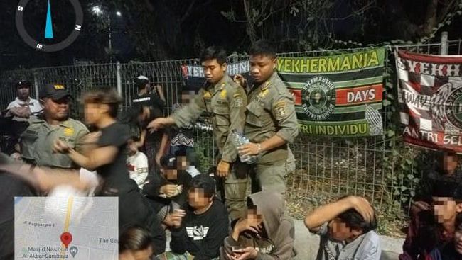 Satpol PP Surabaya menemukan 7 orang tengah pesta miras di kawasan Masjid Al-Akbar saat acara selawatan Habib Syekh. Tetapi hanya 3 orang yang diamankan, 4 lainnya kabur.