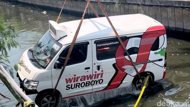 Suara keras tabrakan terdengar bersamaan pekik sejumlah pengendara di kawasan Gunung Anyar arah ke UPN Surabaya. Transportasi pengumpan atau feeder Wira Wiri Suroboyo tiba-tiba menabrak besi pembatas hingga akhirnya kendaraan itu beserta sopir, kernet, dan 2 penumpangnya nyemplung ke kali.