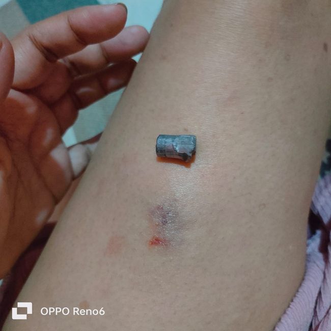Untunglah peluru itu tak menembus bagian tubuh korban. Namun peluru itu membuat paha kiri korban memar.