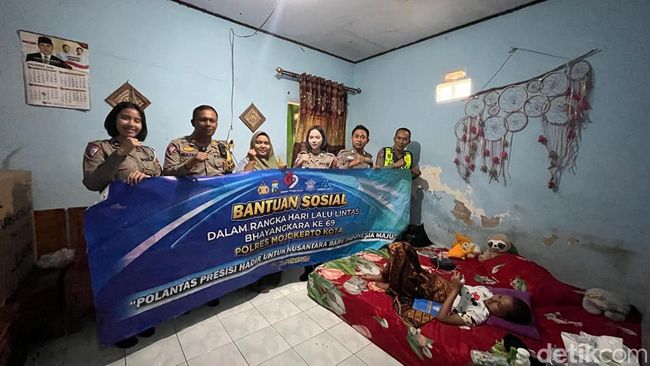 "Dalam rangkat HUT Lalu Lintas Bhayangkara ke-69, kami bersama teman-teman lalu lintas Polres Mojokerto Kota memberikan sedikit rezeki manfaat kepada adik Okta yang sedang sakit tumor," terang Kasat Lantas Polres Mojokerto Kota AKP Mulyani kepada wartawan di lokasi, Sabtu (21/9/2024).