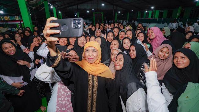 Ketua Umum PP Muslimat NU Khofifah Indar Parawansa menghadiri pengajian peringatan Maulid Nabi Muhammad SAW di Ponpes Sabilul Muttaqien di Pungging, Mojokerto. Dalam acara tersebut, Khofifah menyampaikan pesan tentang penguatan iman.